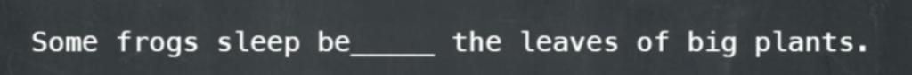 Some frogs sleep be_____ the leaves of big plants.