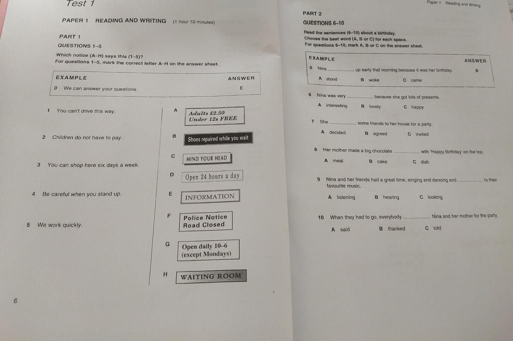 PAPER 1 READING AND WRITING (1 hour 10 minutes)
