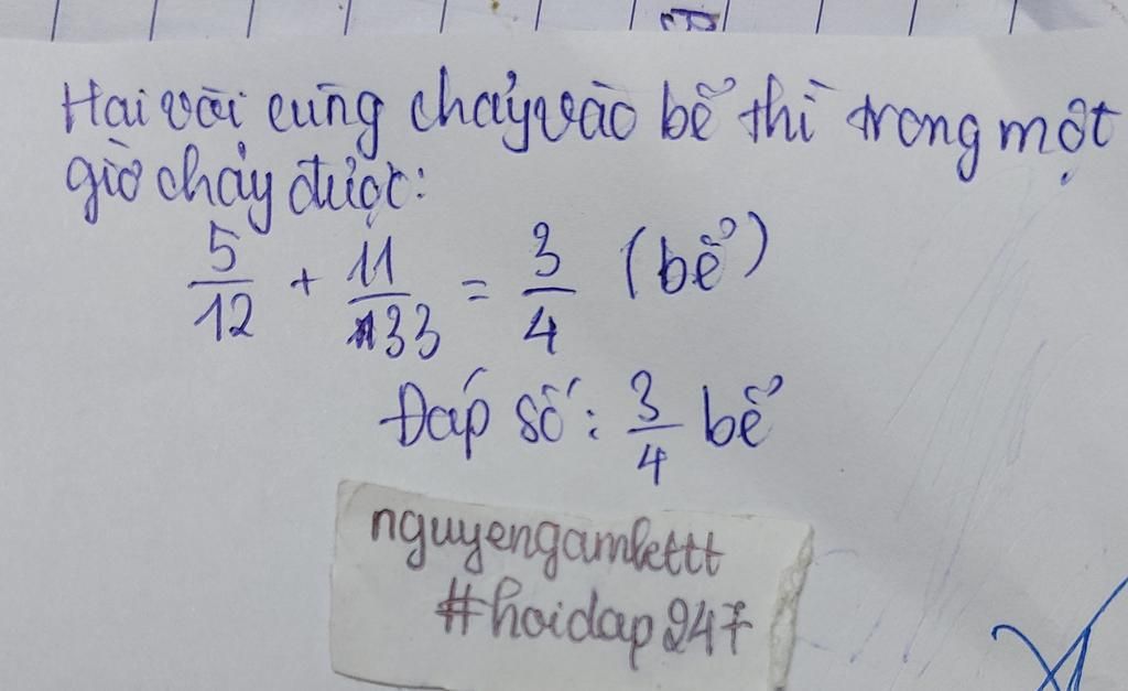 `5/12` `+` `11/33` `=` `165/396` `+` `132/396` `=` `3/4` (bể)