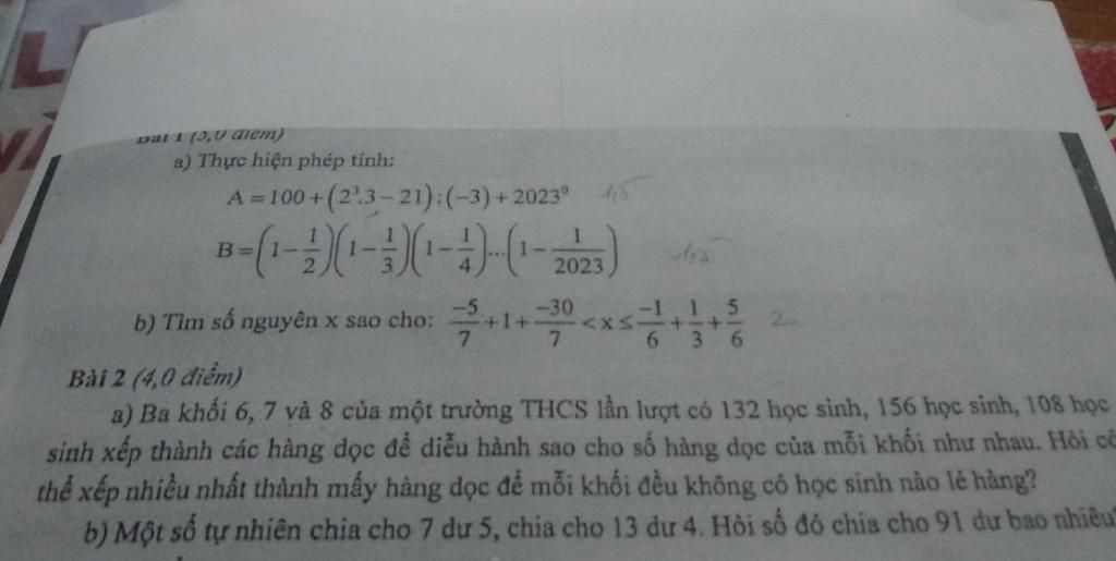a) Ba khối 6, 7 và 8 của một trưởng THCS lần lượt có 132 học sinh, 156 học sinh, 108 học