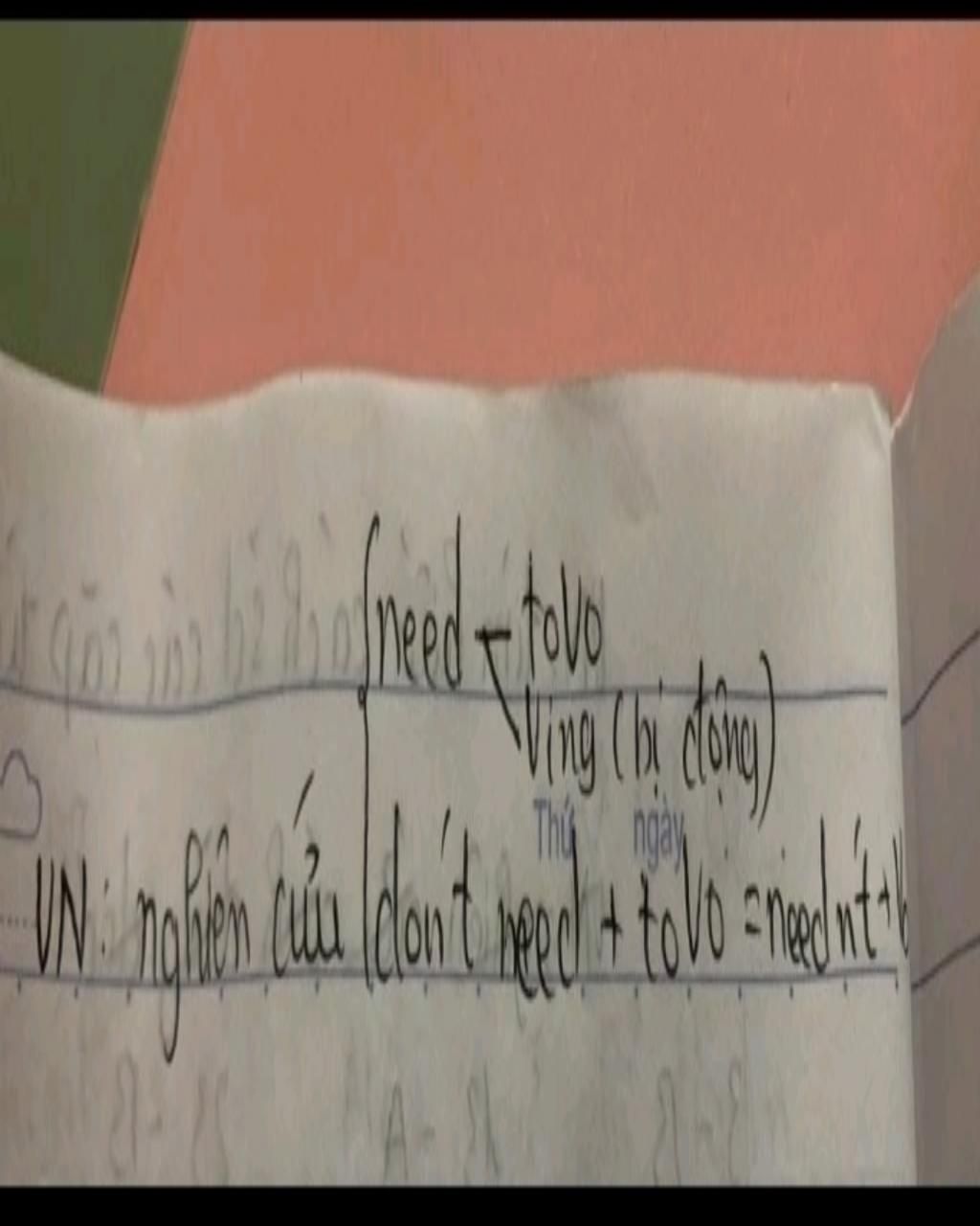 - need Ving : cần được làm gì ( thể chủ động )