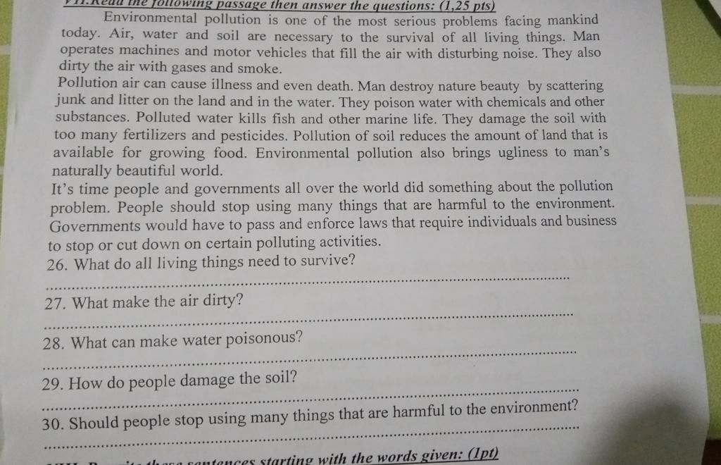 today. Air, water and soil are necessary to the survival of all living things. Man