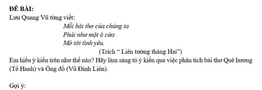 Em hiểu ý kiến trên như thế nào? Hãy làm sáng tỏ ý kiến qua việc phân tích bài thơ Quê hương