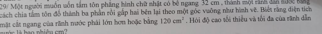 29/ Một người muốn uốn tấm tôn phẳng hình chữ nhật có bề ngang 32 cm , thành một rãnh dan nước bang