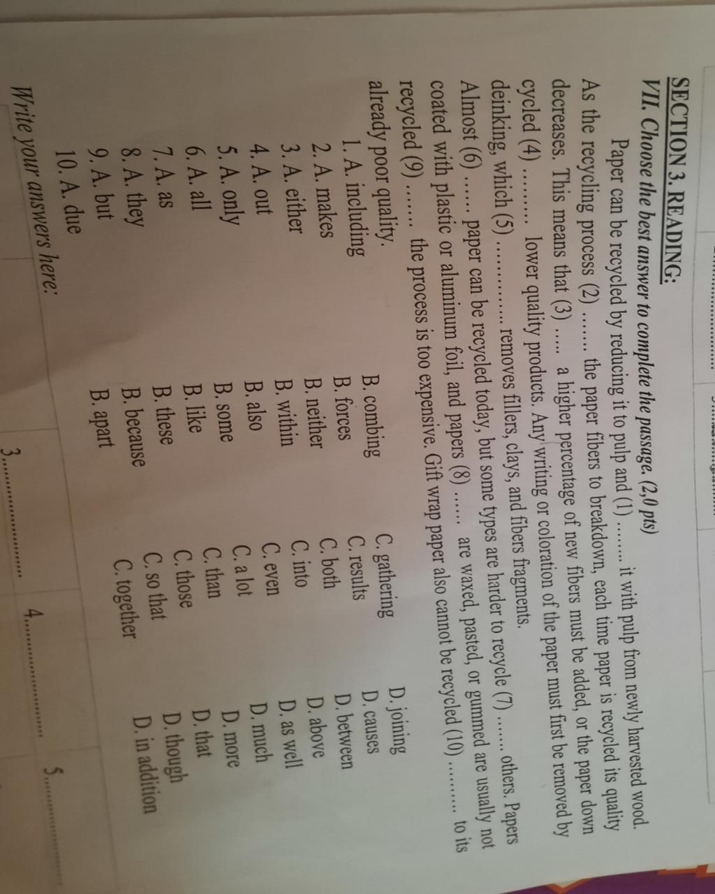VII. Choose the best answer to complete the passage. (2,0 pts)