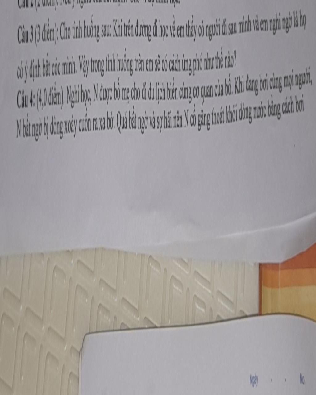 ⇒ trong tình huống đó em nên bình tĩnh và đii vào một ngôi nhà gần đó để tạm lánh hoặc chạy thật nhanh đến nơi đông người ( hay trụ sở công an nếu ở gần đó) để nhờ sự trợ giúp