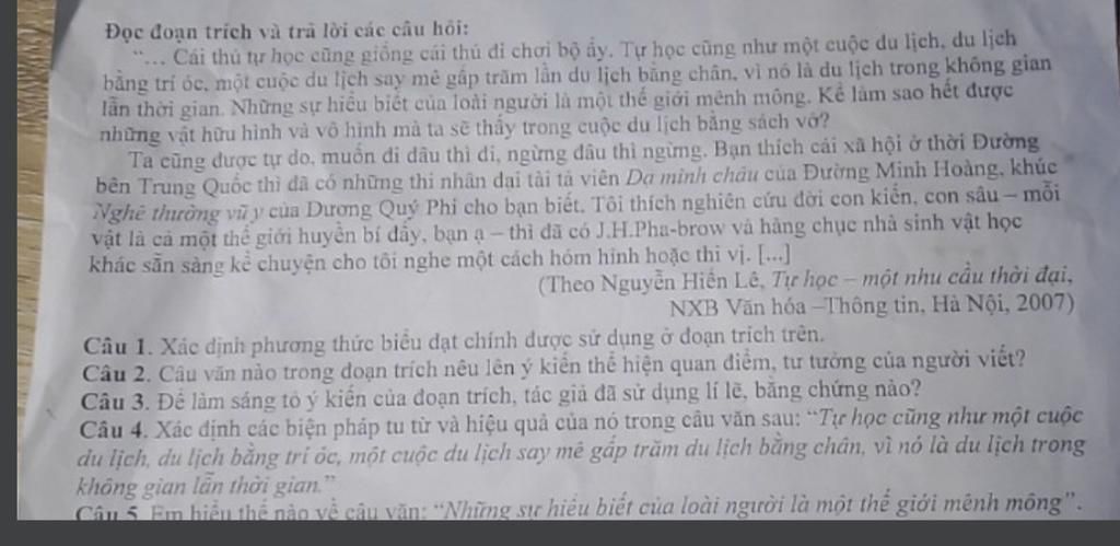 Câu 1 . Phương thức biểu đạt chính của đoạn văn trên là : Nghị luận