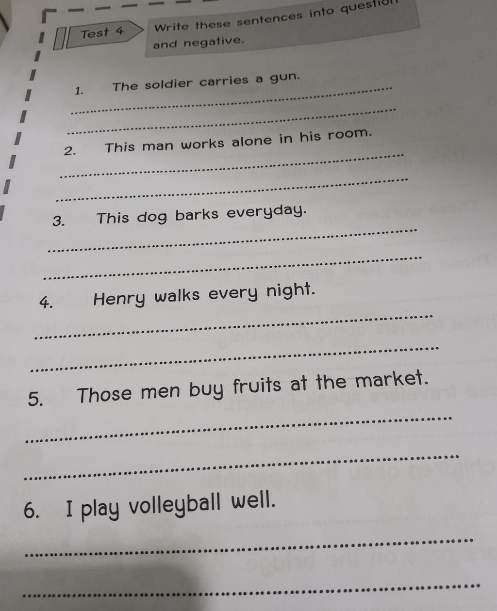 `(-)` S + don't/doesn't + V | S + is/am/are + not + ....