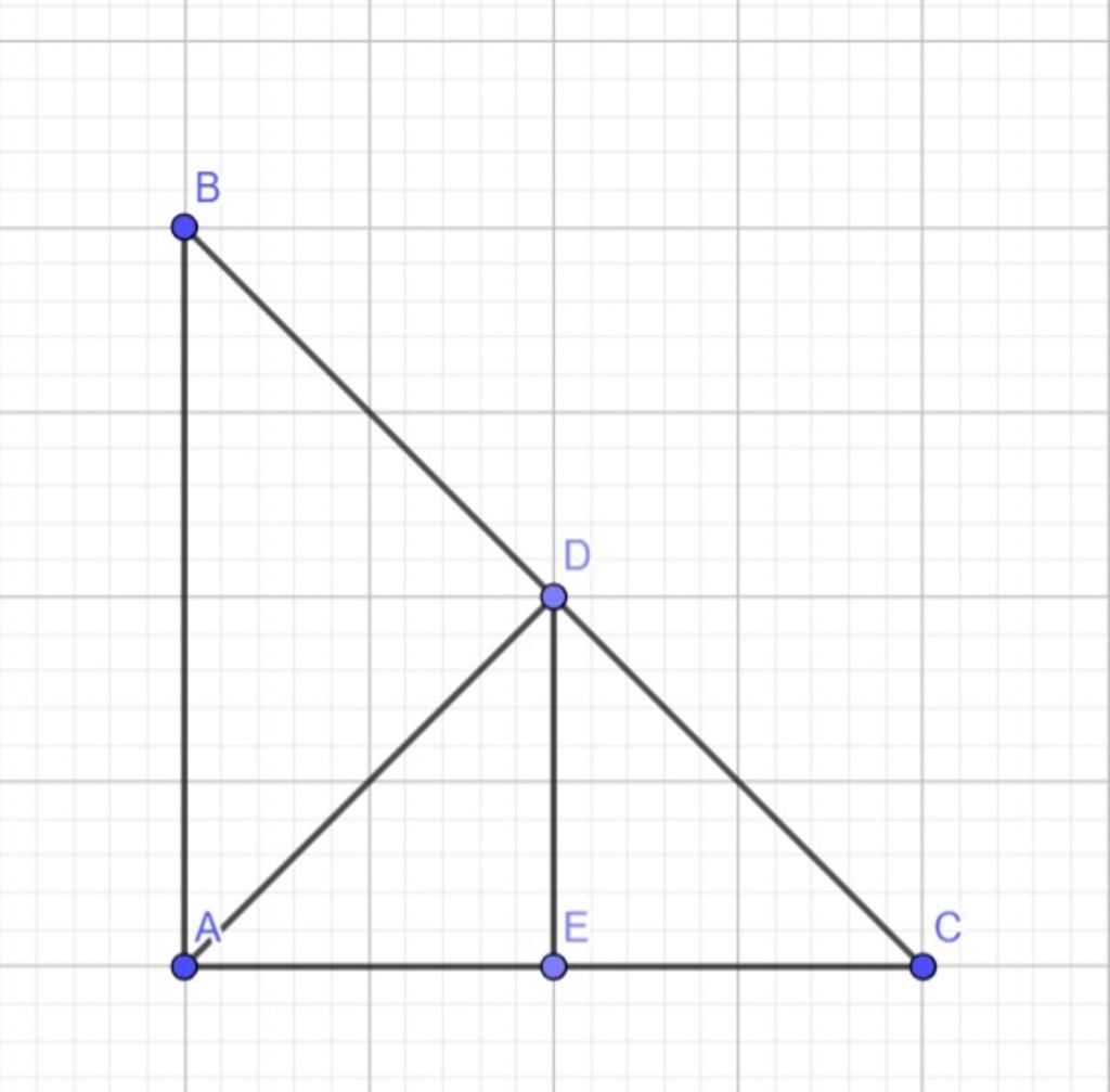 `b)` Δ`ABC` vuông cân tại `A`