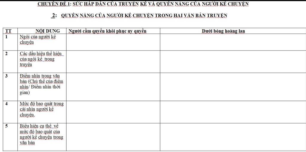 CHUYÊN ĐỀ 1: SỨC HẤP DẪN CỦA TRUYỆN KẺ VÀ QUYỀN NĂNG CỦA NGƯỜI KẺ CHUYỆN