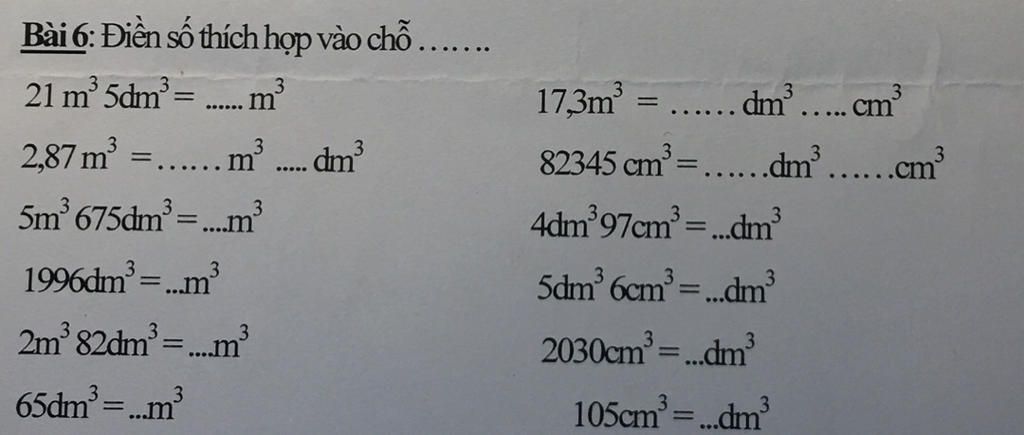 5 dm3 6cm3 = 5,006 dm3