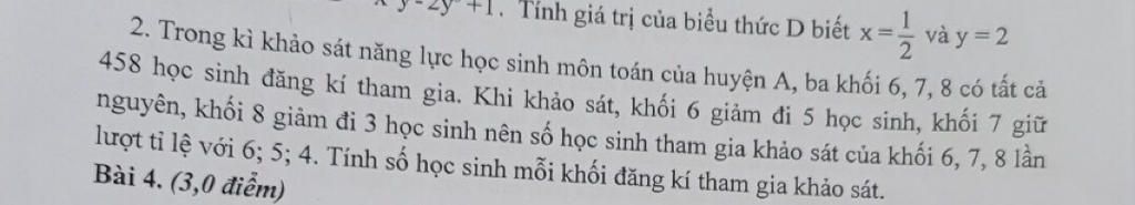 458 học sinh đăng kí tham gia. Khi khảo sát, khối 6 giảm đi 5 học sinh, khối 7 giữ