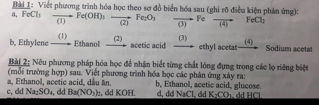 Bài 1: Viết phương trình hóa học theo sơ đồ biến hóa sau (ghi rõ điều kiện phản ứng):