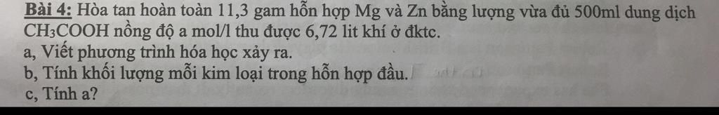 `Zn+ 2CH_3COOH-> (CH_3COO)_2Mg + H_2`