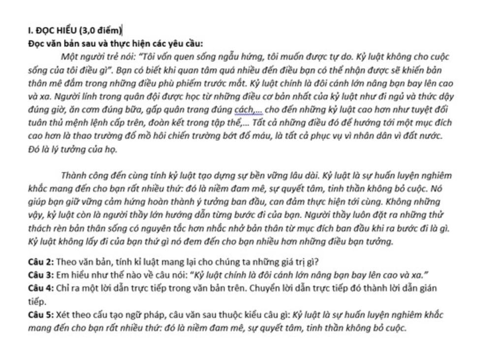 Câu 5: •Xét cấu tạo ngữ pháp câu văn 'Kỉ luật là sự huấn luyện nghiêm khắc mang đến cho bạn rất nhiều thứ , đó là :niềm đam mê , sự quyết tâm, tinh thần không bỏ cuộc"