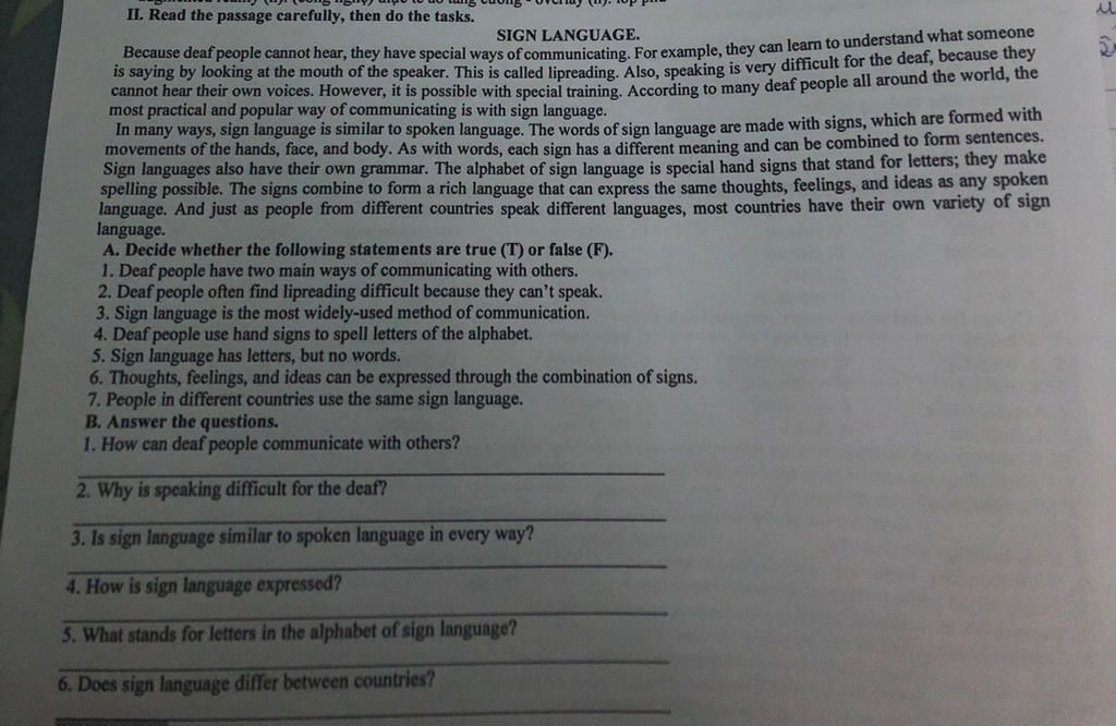 2. F (Also, speaking is very difficult for the deaf, because they cannot hear their own voices)