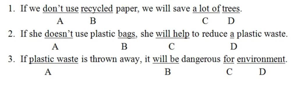 1. A -> use (câu đk loại 1: nếu chúng ta sử dụng giấy được tái chế...)