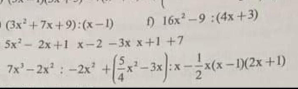 `a) (3x^2 + 7x + 9) : (x-1)`