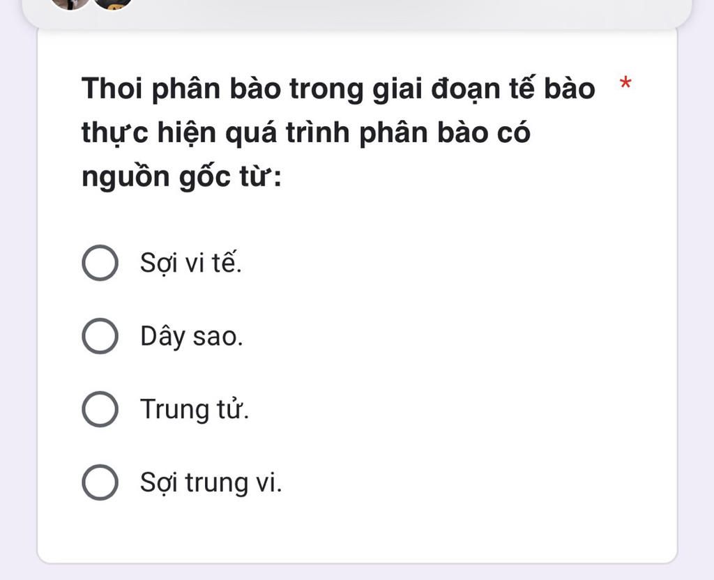 Thoi phân bào trong giai đoạn tế bào thức hiện quá trình phân bào có nguồn gốc từ