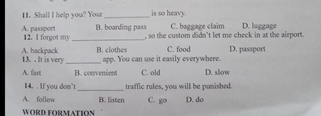 `=>` Chọn D ( Không có hộ chiếu thì không thể làm thủ tục lên máy bay )