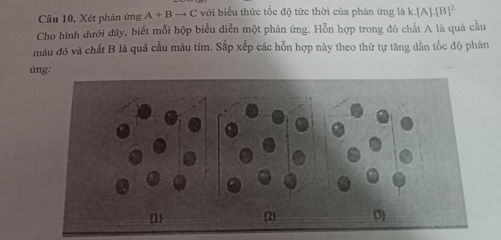 màu đỏ và chất B là quả cầu màu tím. Sắp xếp các hỗn hợp này theo thứ tự tăng dần tốc độ phản