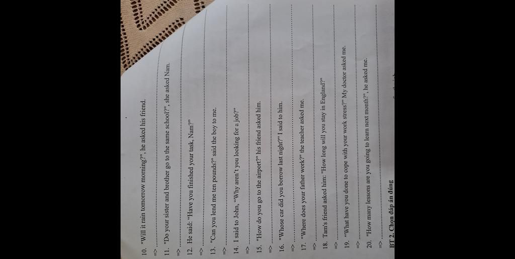 12. He asked Nam if he had finished his task.