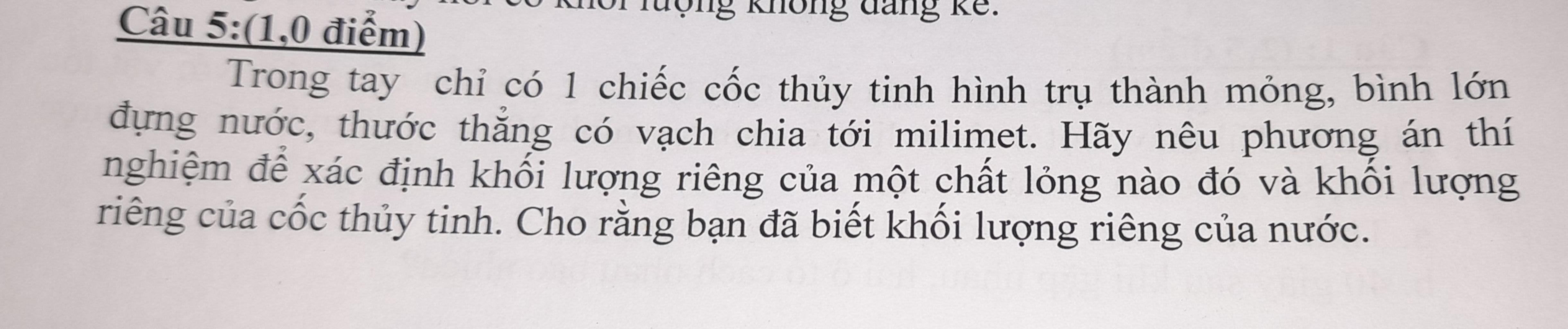 nghiệm để xác định khối lượng riêng của một chất lỏng nào đó và khối lượng