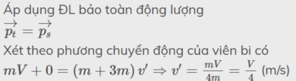 \Rightarrow v = \dfrac{{mV}}{{m + 3m}} = \dfrac{V}{4}