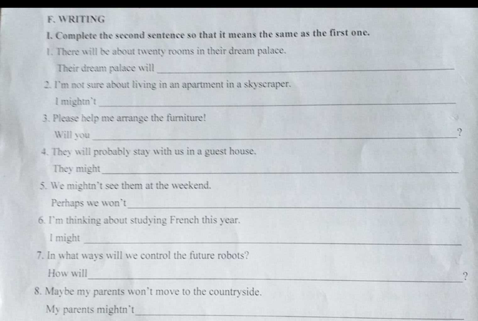 * Might (not) có thể được dùng ở hiện tại hoặc quá khứ, diễn tả hành động có thể xảy ra hoặc không (hầu hết là khó xảy ra trong tương lai.