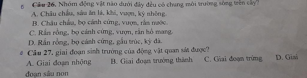 câu 7: B vì giai đoạn này đủ lớn để người có thể quan sát bằng mắt thường