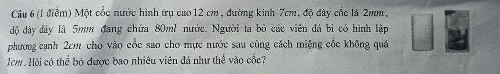 Số viên đá tối đa có thể bỏ vào cốc để mực nước sau cùng không quá `1cm` :