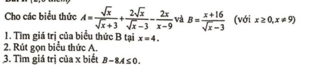 `B-8A<=0<=> {x+16}/{sqrt{x}-3}-{8sqrt{x}}/{sqrt{x}-3}<=0`