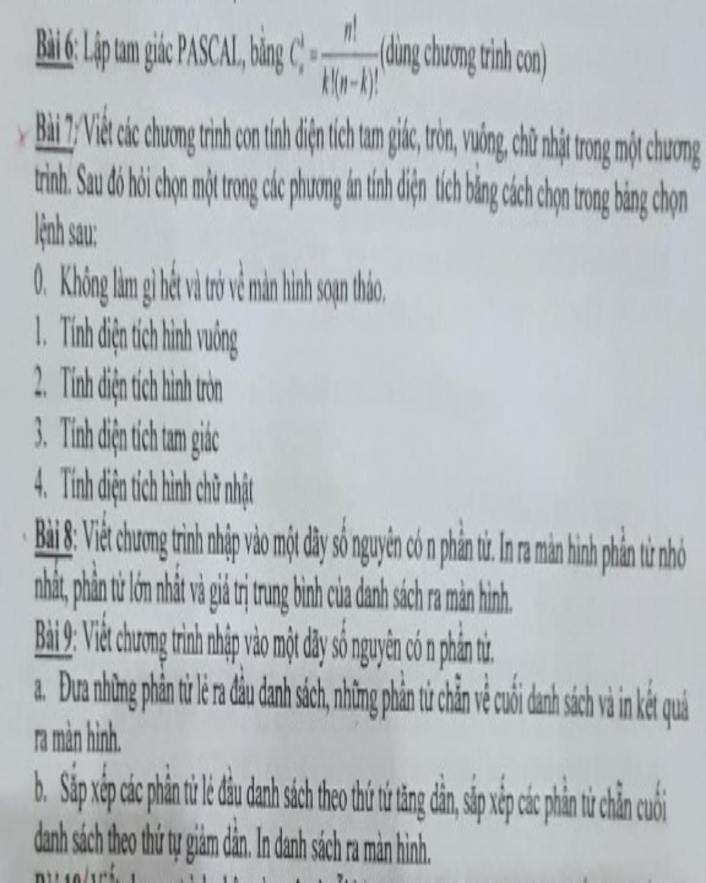 Bài 6: Lập tam giác PASCAL, bằng Cố