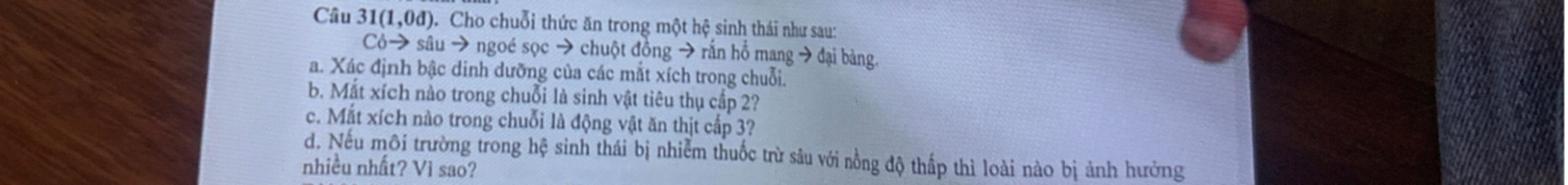 c. Sinh vật ăn thịt bậc 3: đại bàng