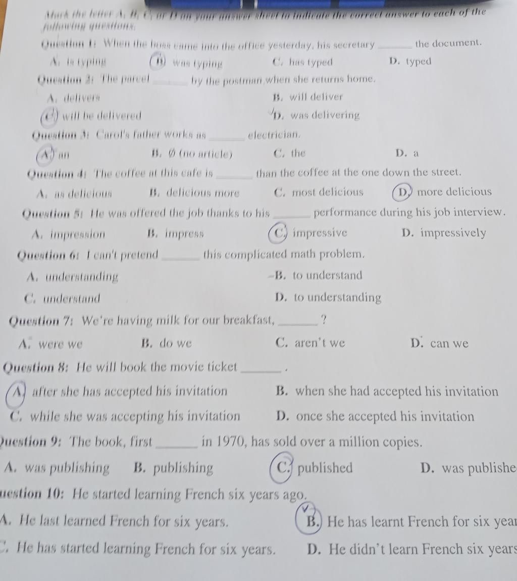 10. B (chuyển QKĐ sang HTHT, for + khoảng thời gian)