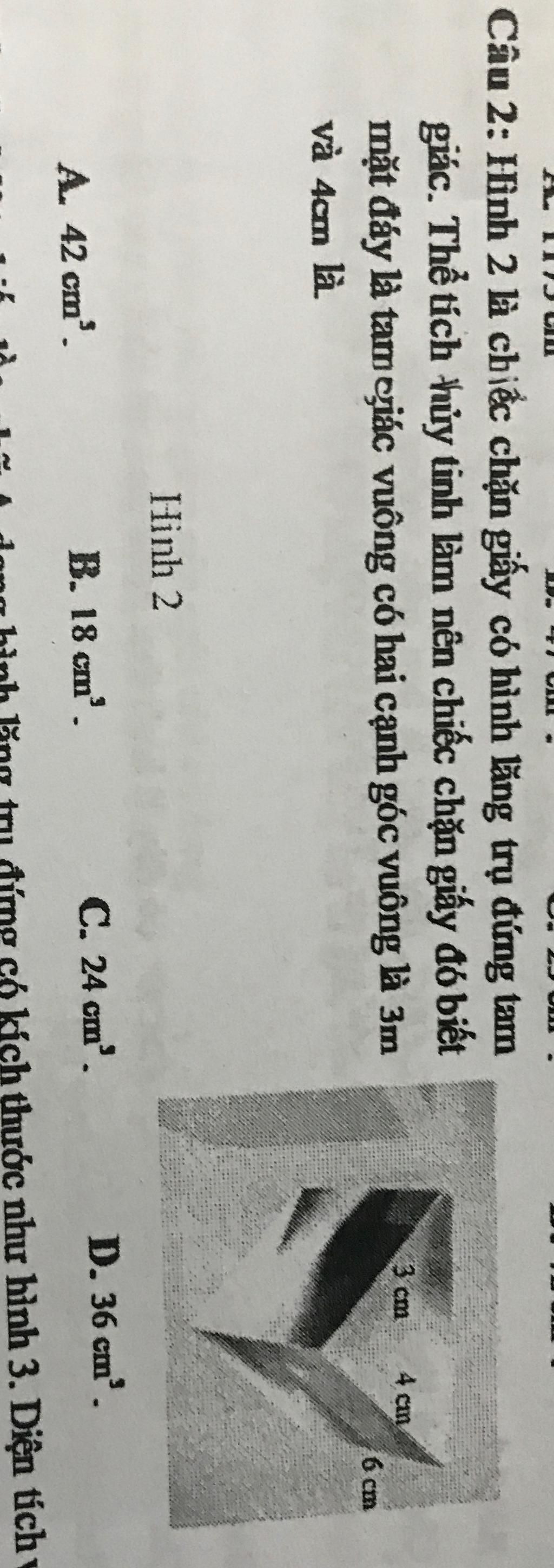 Câu 2: Hình 2 là chiếc chặn giấy có hình lăng trụ đứng tam