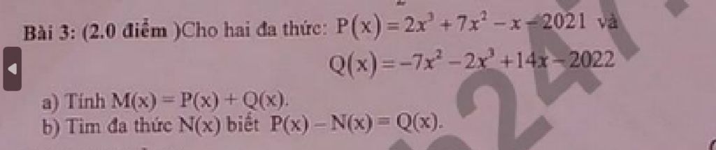 `=> M(x) = (2x^3 + 7x^2 - x - 2021) + (-7x^2 - 2x^3 + 14x - 2022)`