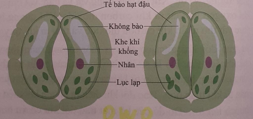 `-` Ở khí khổng có hai tế bào hình hạt đậu, xếp úp vào nhau tạo nên khe khí khổng (như hình bên)