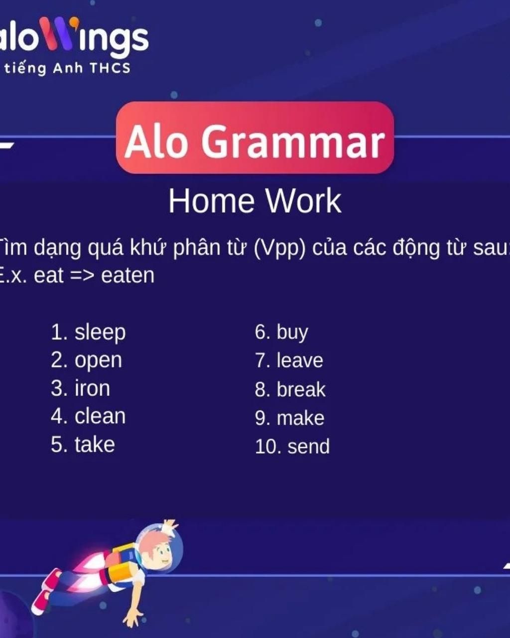 `1`, sleep `->` slept : ngủ