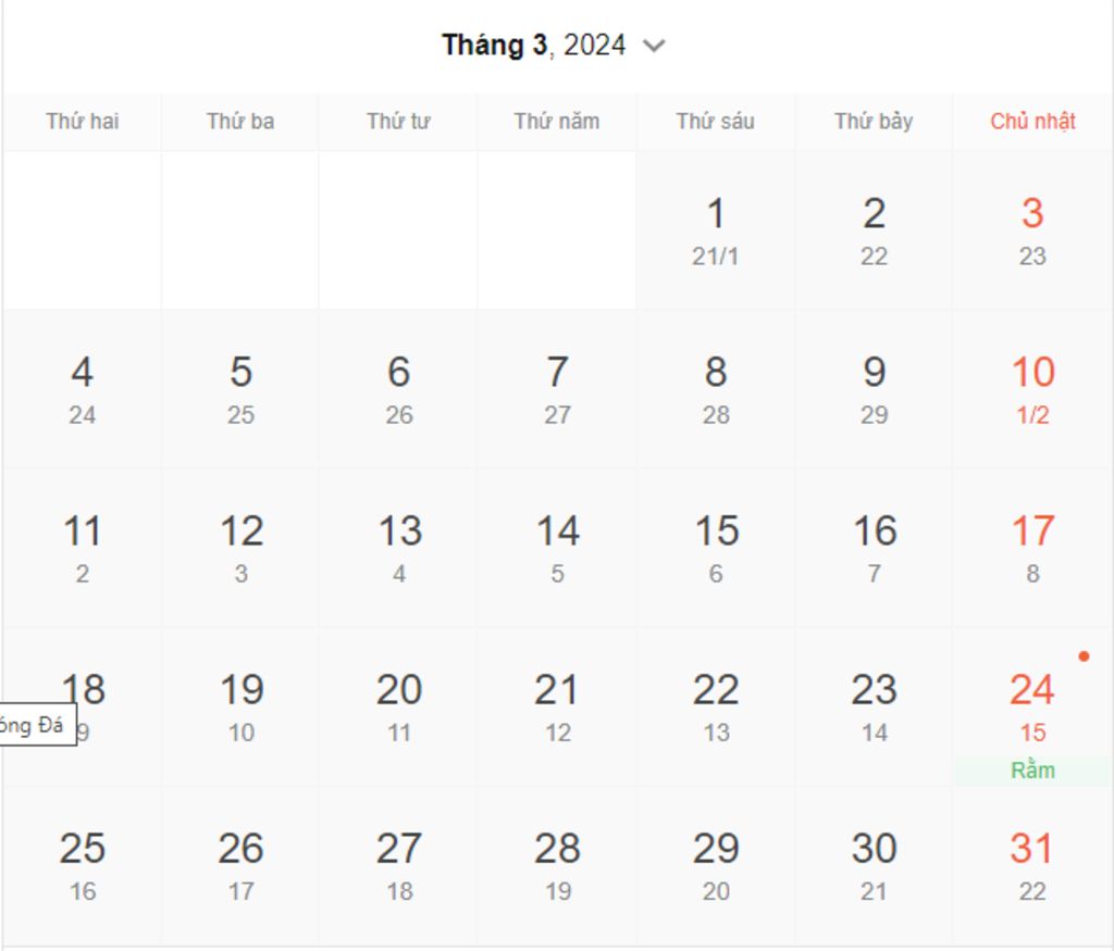 Thường tháng 2 có 28 còn năm nhuận thì tháng hai có 29 ngày. 8/3/2022 -> 8/3/2024 là tổng 2 năm . Vậy 8/3/2022 là thứ ba nên 8/3/2024 là thứ sáu, bạn có thể tham khảo các lịch ở trên google, mình gửi link ở dưới bình luận nhé. (Ảnh ở phần câu trả lời này).