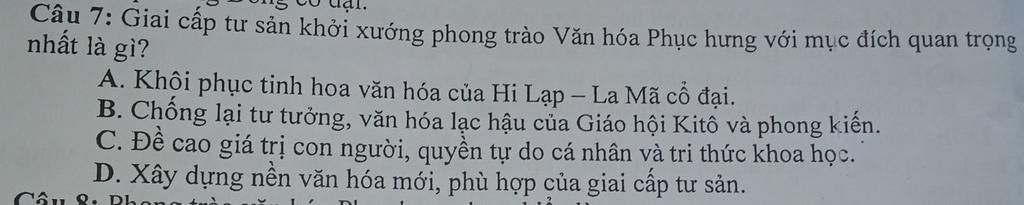 -> A . Khôi phục lại tinh hoa văn hoá của Hi Lạp - La Mã