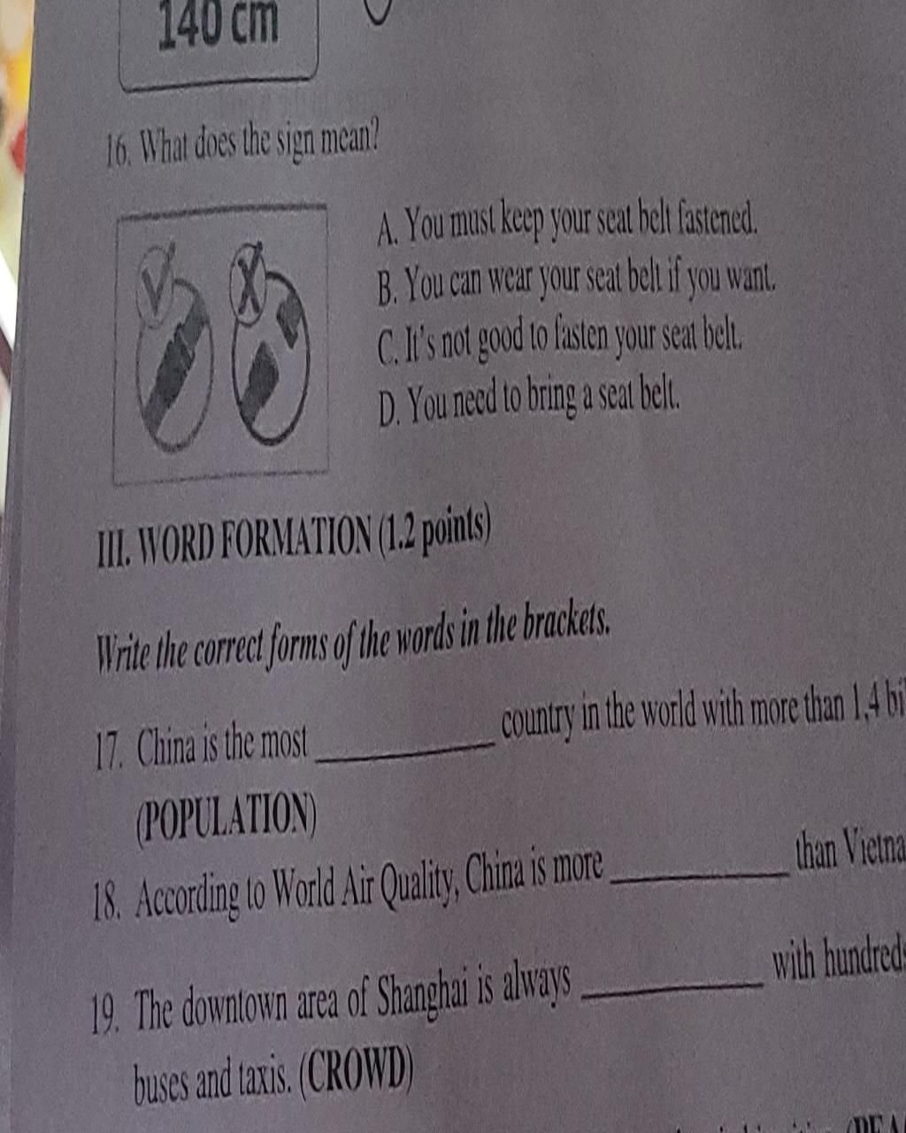 → $A.$ $You$ $must$ $keep$ $your$ $seat$ $belt$ $fastened.$