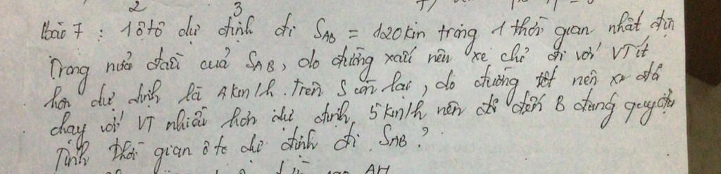 Đề kêu tìm thời gian nhưng nếu gọi x thời gian sẽ khó giải, nhưng đọc đề ta thấy thấy vận tốc cũng là số chưa biết và nếu có vận tốc thì sẽ tính được thời gian ( t=S/v). nửa quãng đầu+ nửa quãng sau = 120 km=> nửa quãng đầu= nửa quãng sau = 60km. đây là cách mình hiểu và làm bạn có thể tham khảo.