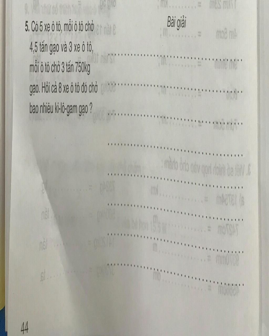 `5` xe ô tô đầu chở được số tấn gạo là: