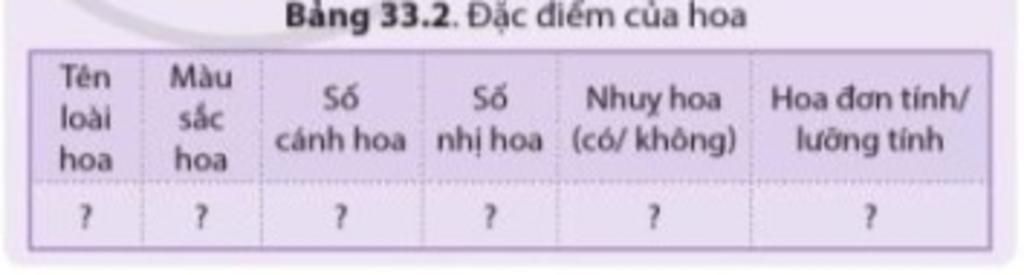 tên loài hoa|màu sắc hoa|số cánh hoa|số nhị hoa|nhị hoa [có/không]|hoa đơn tính/lưỡng tính