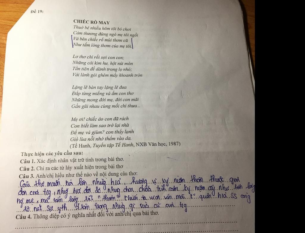 Câu 4: Thông điệp ý nghĩa nhất: sự hy sinh, vất vả, tần tảo lo lắng cho cho của mẹ.