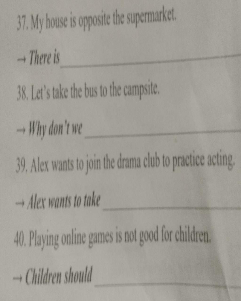 `->` Tạm dịch: Có một siêu thị đối diện với nhà tôi