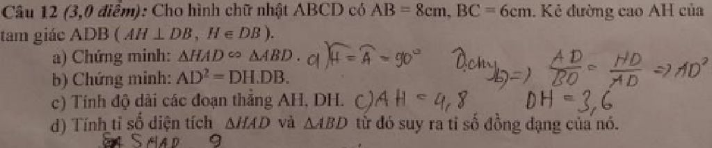 $\to DH=\dfrac{AD^2}{DB}=3.6$ vì $AD^2=DH\cdot DB$