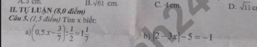 a) $\left( 0,5.x-\dfrac{3}{7} \right):\dfrac{1}{2}=1\dfrac{1}{7}$