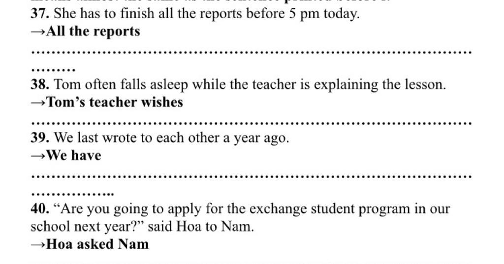 38. Tom often falls asleep while the teacher is explaining the lesson.